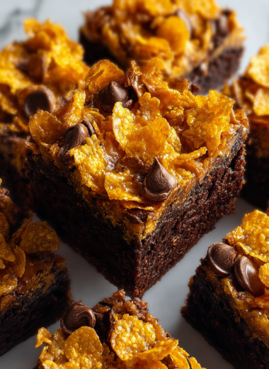 0 commentsThese Caramel Cornflake Brownies combine rich chocolatey decadence with a crunchy caramel topping, making them ideal for celebrations or a delightful afternoon…