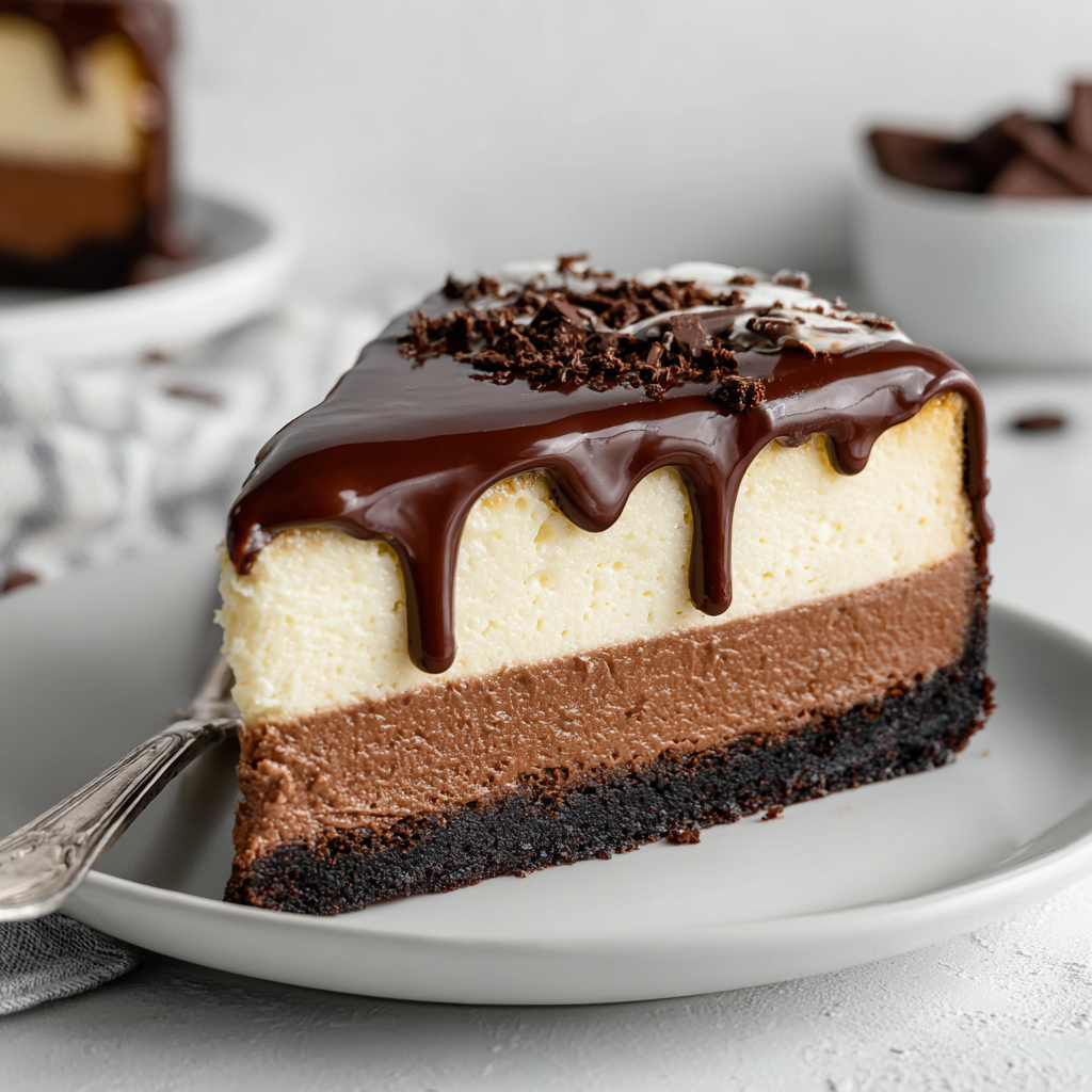 Indulgent Triple Layer Chocolate Ganache Cheesecake